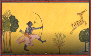 श्रीराम का एक अन्य विशिष्ट चित्र भी इस काल का है, जिसमें वे वन में स्वर्ण मृग का