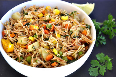 मिली जुली सब्जियाँ छोटी कटी डेढ़ कप, हरी मिर्च १, तेल १