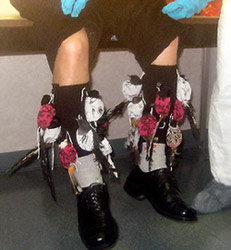 चिड़ियों से सजे मोज़े जाँच अधिकारियों ने उसकी पैंट ऊपर कर के पकड़ी हुई