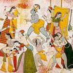 राजपूत महाराजा को रानियों के साथ होली खेलते हुए