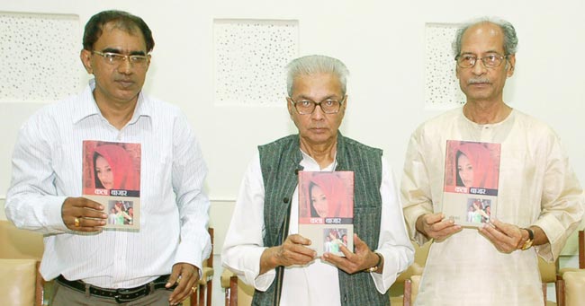 'कला बाजार' के लोकार्पण के अवसर पर बाएँ से अभिज्ञात, डॉ.