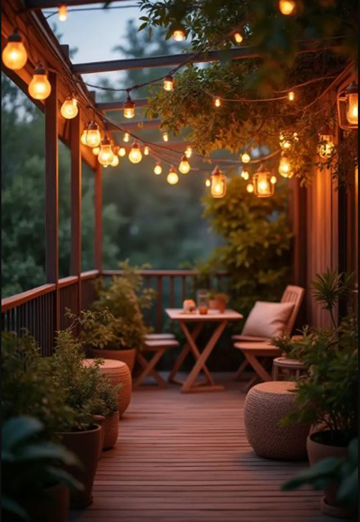 लटकती स्ट्रिंग लाइट्स से अपनी बालकनी में जादू का एहसास
