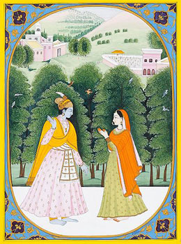 पर, तमाल के पेड़ों पर, फूलों की मालाओं पर, वृंदावन