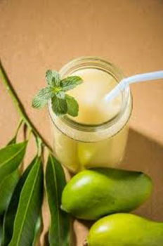कुछ ही देर में वे एक काँच के गिलास में आम का पना लेकर